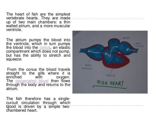Fish Blood from image.slidesharecdn.com It can be contrasted with fish physiology, which is the study of how the component parts of fish function together in the living fish. Fish hearts draw in deoxygenated blood in a single atrium, and pump it out through a ventricle. Crocodile icefish of the antarctic do. A rudimentary valve is located between the two ch… Learn vocabulary, terms and more with flashcards, games and other study tools. Start studying 4 chambers of fish heart. It seems like you have a case of congestive hear. The fish heart is a tube made of two consecutive chambers: